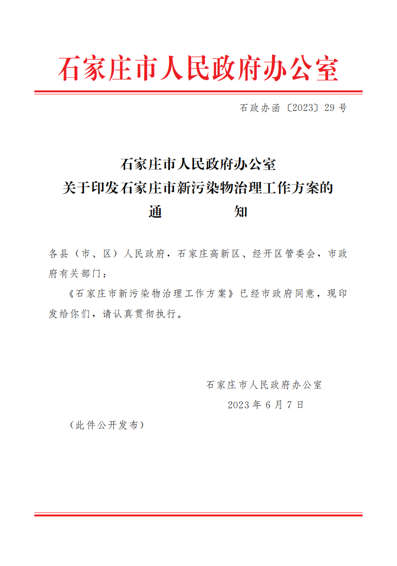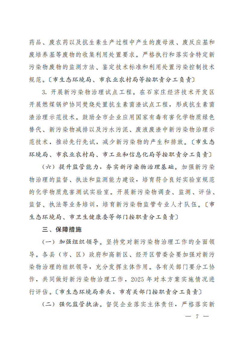 石家庄市人民政府印发石家庄市新污染物治理工作方案