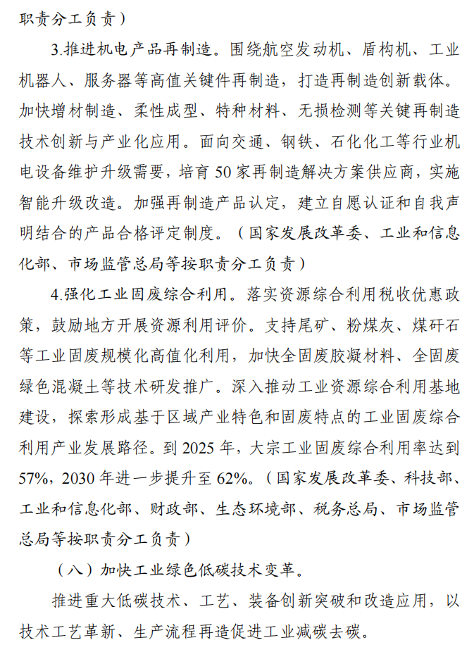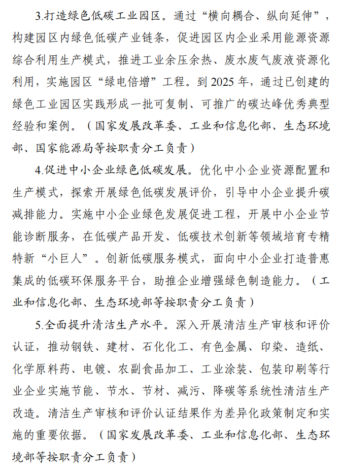 工业和信息化部 国家发展改革委 生态环境部关于印发工业领域碳达峰实施方案的通知