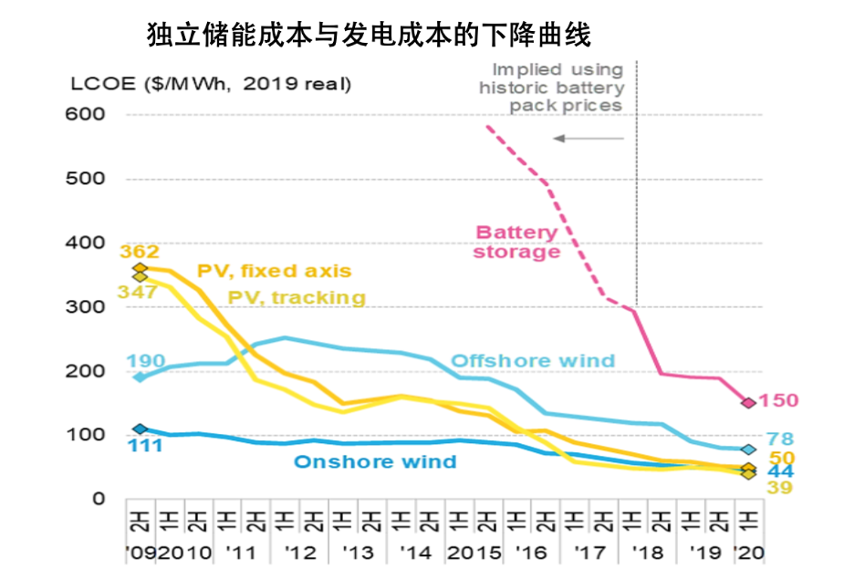 能够对清洁能源的未来发展抱有信心,很大程度上来自于光伏、风能的发电成本在过去这些年迅速的降低,已经可以直面传统能源的竞争。