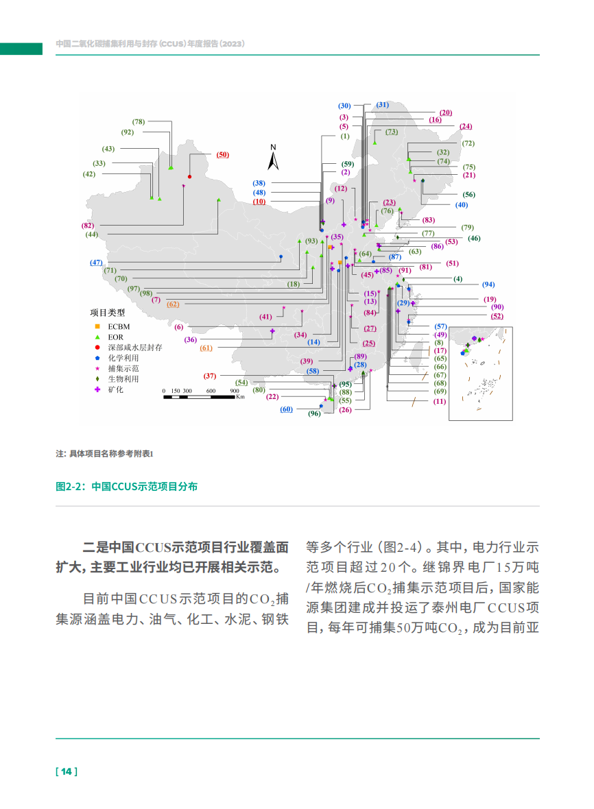 《报告》指出,我国发布了70余项CCUS相关的政策文件,涉及规划、路线图、技术目录等,在CCUS技术研发、标准和融资等方面做出了积极部署。在碳达峰碳中和目标下,我国CCUS各环节技术发展迅速,示范项目规模不断扩大,CCUS技术应用的行业和部门持续增加。据不完全统计,当前我国规划和运行CCUS示范项目总数接近百个,涵盖电力、油气、化工、水泥、钢铁等多个行业。其中超过半数的项目建成投产,具备二氧化碳捕集能力超过400万吨/年,注入能力超过200万吨/年。