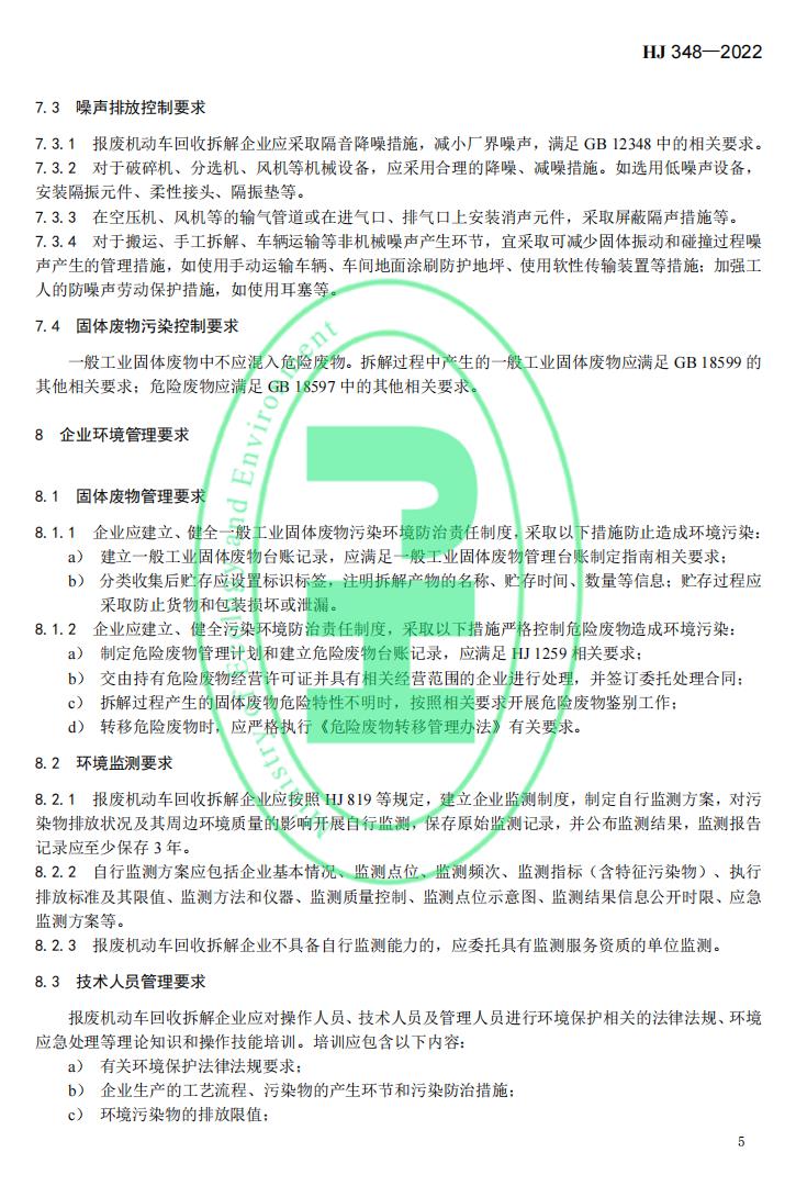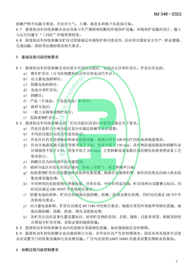 《报废机动车拆解企业污染控制技术规范》(HJ 348-2022)