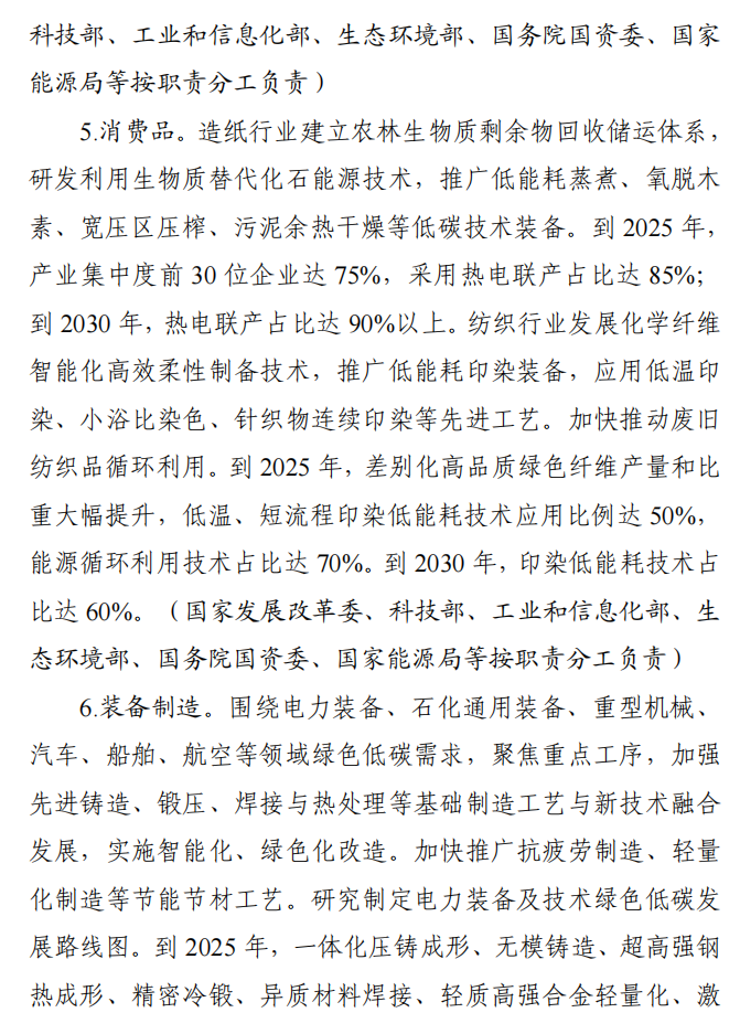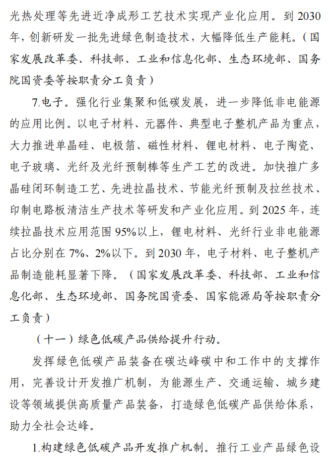 工业和信息化部 国家发展改革委 生态环境部关于印发工业领域碳达峰实施方案的通知